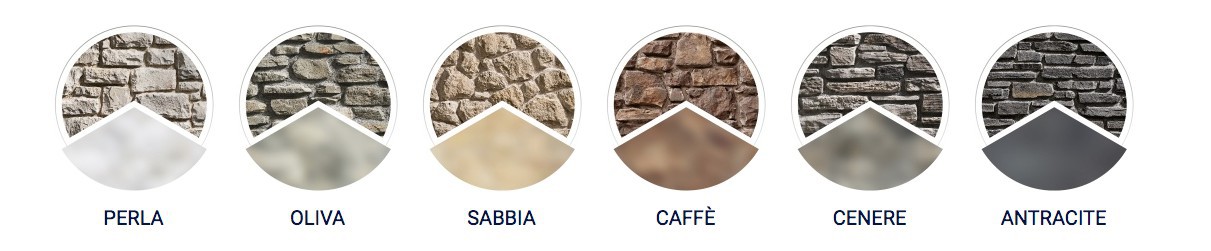Rastone offre 6 colorazioni base, da cui sono ricavabili 11 miscele, creando così delle infinite possibilità di personalizzazione. Ogni colorazione viene applicata sulla pietra disomogeneamente utilizzando ossidi minerali permanenti della migliore qualità.