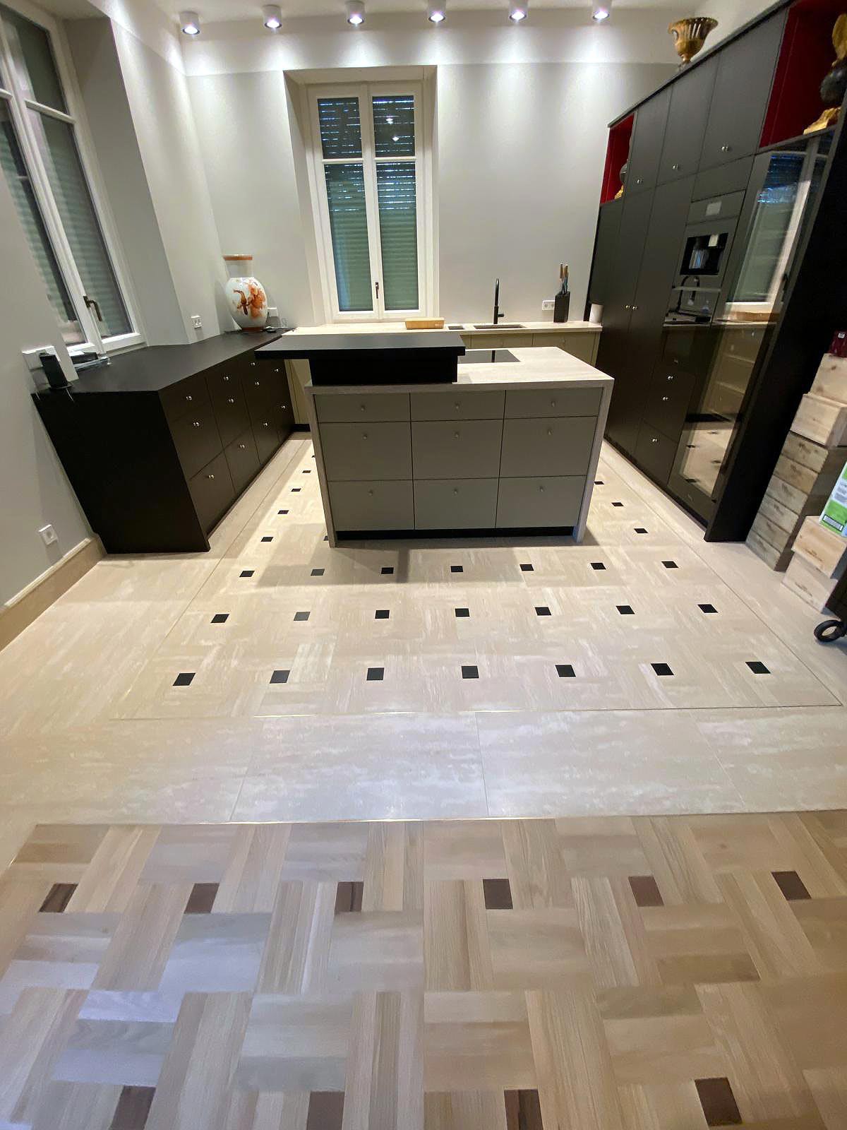 A rendere questo progetto ancora più unico è la lavorazione a casellario, una tecnica sartoriale che prevede il taglio e la posa di ogni lastra in modo millimetrico, come fosse un mosaico su misura. Ogni elemento è studiato nei minimi dettagli per comporre un disegno uniforme e coerente, che valorizza le naturali variazioni della pietra senza spezzarne la continuità.