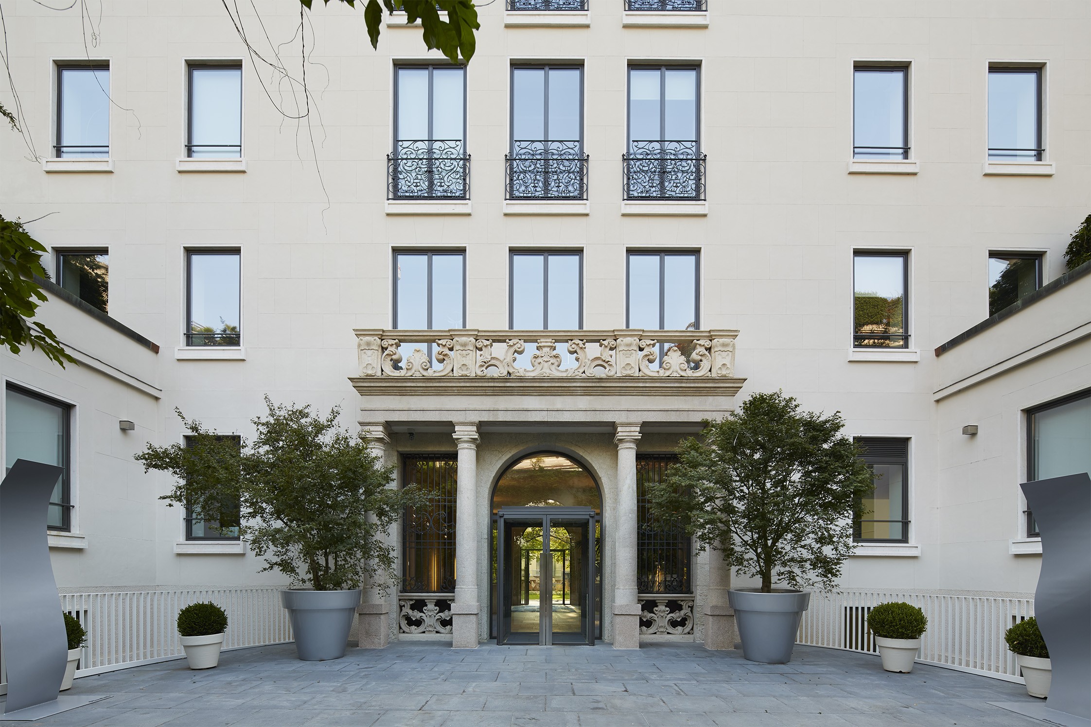 La soluzione progettuale, così come proposta e realizzata, ha valorizzato le qualità spaziali dei vuoti rafforzando la presenza del verde ai vari livelli dell'edificio, per offrire ai clienti della banca sempre più privacy e comfort. Obiettivo dell'intero intervento è stato infatti salvaguardare le qualità architettoniche dell'edificio, modificando il meno possibile la sua immagine consolidata. |