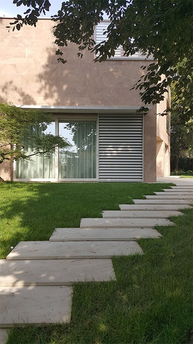 Il progetto, infatti, ha richiesto il rivestimento dei pavimenti e, soprattutto, delle pareti esterne della Villa: una realizzazione particolarmente difficoltosa perché prevedeva la posa su isolamento termico esterno.