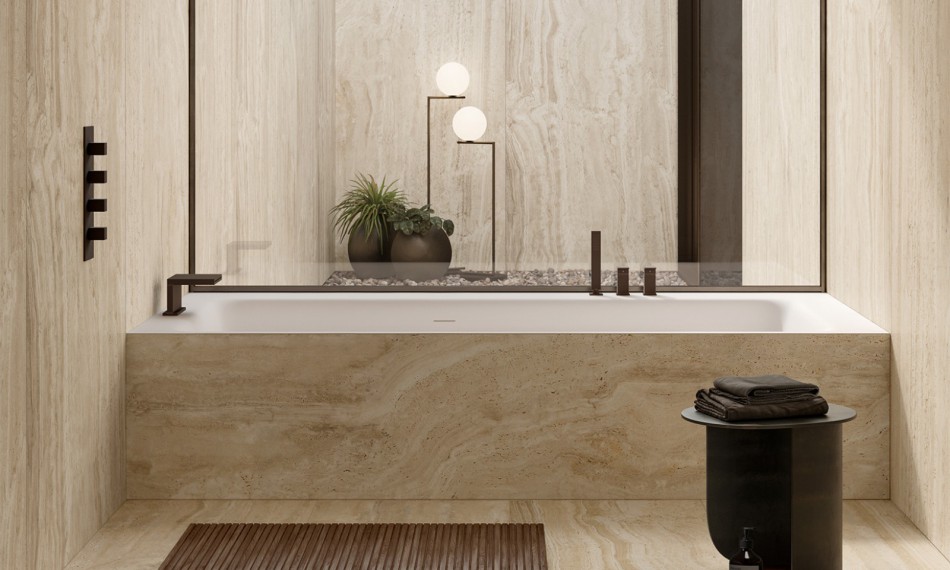 Entwerfen, bauen und dekorieren Sie Ihre natürliche Umgebung mit ökologischem rekonstruiertem Stein, Naturstein, Feinsteinzeug und RASTONE Teakholz.