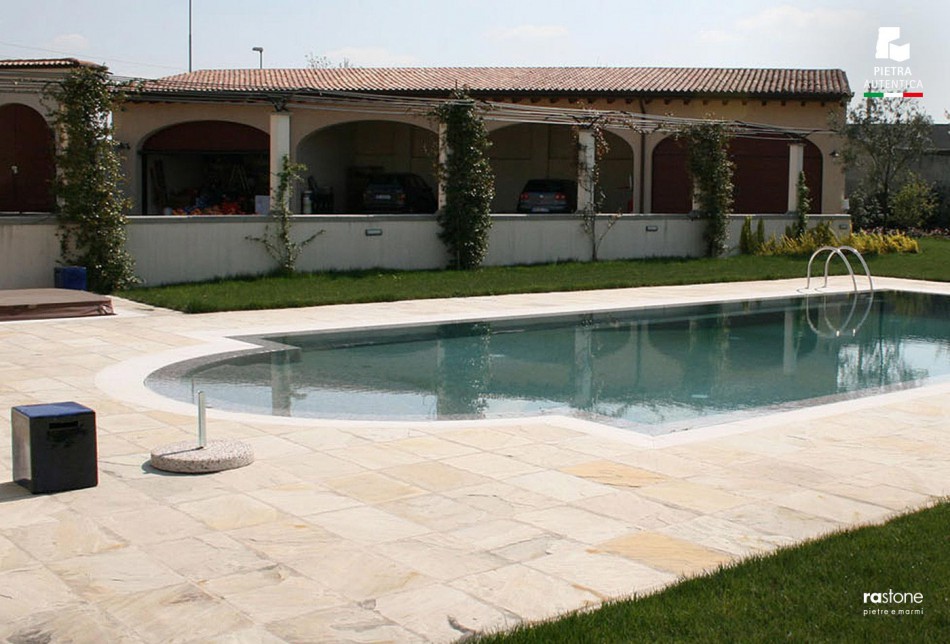 Sandstone is a type of sedimentary rock that comes in many versions. The basic structure consists of a deposited layers of grains of sand. Sandstone is compact, dense and so particularly ice and weather resistant. It has a non-slip surface, making it ideal for courtyards and patios, as well exclusive examples of interior design.