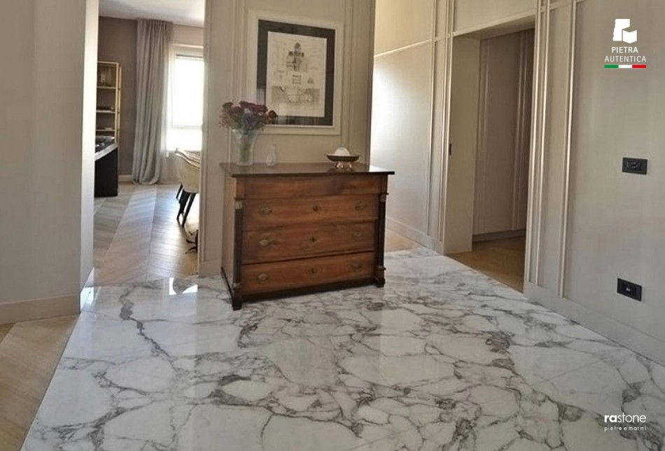 Dall'antico greco "màrmaron", la parola marmo ha l'originario significato di "pietra splendente". Questa roccia metamorfica, composta per la maggior parte da carbonato di calcio, ha infatti il pregio di far risplendere ogni ambiente di una bellezza e un'eleganza fuori dal comune. Le sue colorazioni e le sue sofisticate venature, frutto della presenza in granuli di impurità minerali come argilla, sabbia o ossidi di ferro, rendono il marmo l'ideale rivestimento per dare pregio e unicità ai propri interni, sia per una raffinata pavimentazione del soggiorno sia per un rivestimento di classe dell'ambiente bagno.