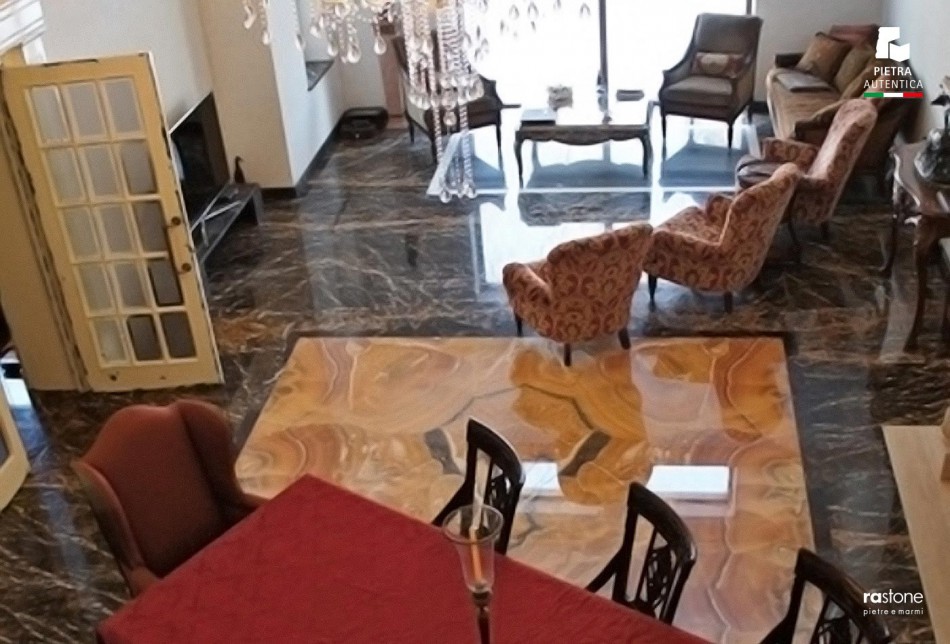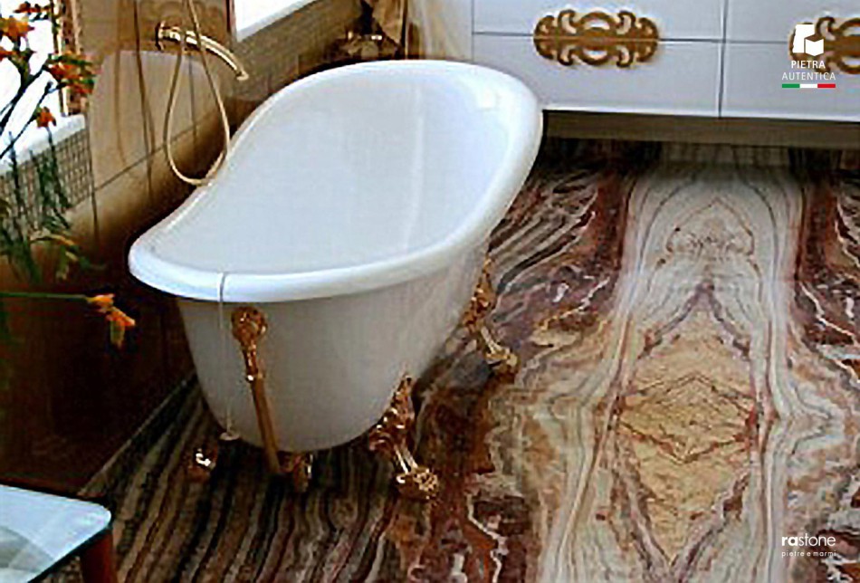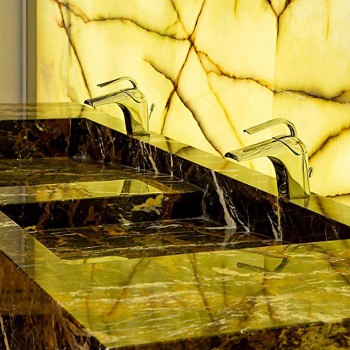 Onice, dal greco "onyks", é chiamato così a causa del suo aspetto che ricorda la superficie "dell'unghia". Roccia ignea composta da quarzo, conquista lo sguardo con splendide colorazioni che variano su tutte le cromie esistenti. L'estetica affascinante e variegata rende ogni lastra di Onice un pezzo unico per toni e venature, per un materiale capace di donare magnificenza a ogni arredamento d'interni, beneficiando spesso di un effetto di retroilluminazione ancora più esclusivo.