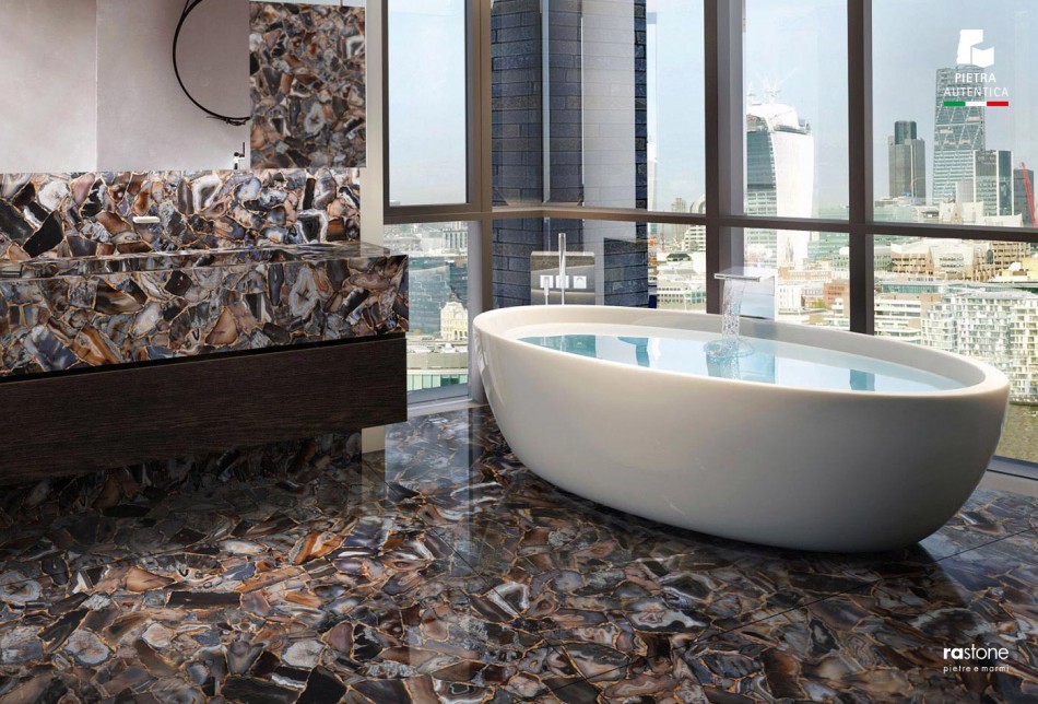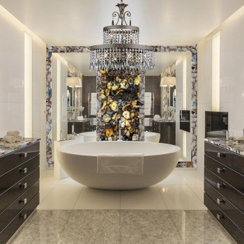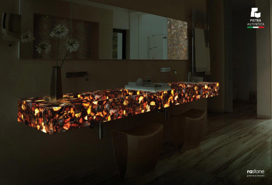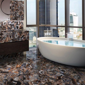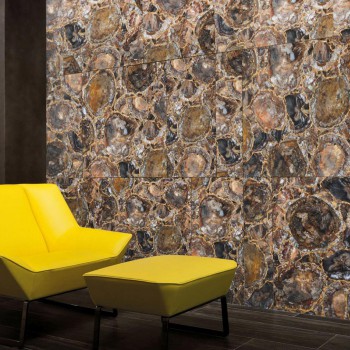 Nelle lastre di semipreziosi sono incastonate gemme assolutamente uniche e inimitabili per rarità, trasparenza, colorazione brillantezza. Quarzo, ametista, agata, occhio di tigre, ematite, diaspro sono solo alcune delle gemme che nelle loro diverse colorazioni e forme vengono lavorate insieme, per dare vita a lastre di grandi dimensioni dal valore assoluto. Un valore che non risiede solo nelle materie prime ma anche nella tecnologia e nelle tecniche di produzione: ecco perché i semipreziosi vengono utilizzati per realizzazioni di altissimo prestigio, come la personalizzazione di intere pareti e la decorazione di tavoli o camini.